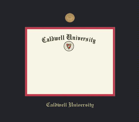 Caldwell University Diploma - MA (1/14 to Present) Frame with Medallion and Black and Red Double Mat and Gold Embossing