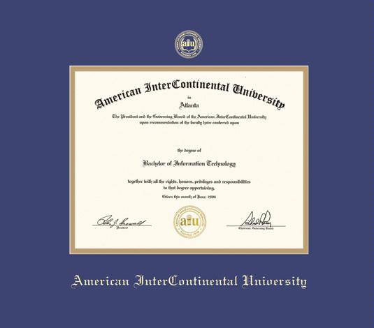 American InterContinental University Diploma (2009 to Present) Frame with Royal Blue and Gold Double Mat and Gold Embossing