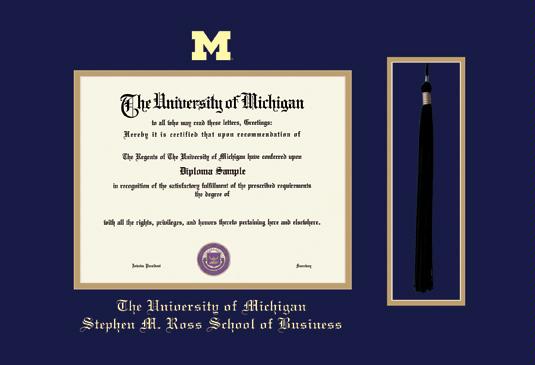 University of Michigan - Ross School of Business Diploma Frame with Tassel Cut-out and Navy Blue and Gold Double Mat and Gold Embossing