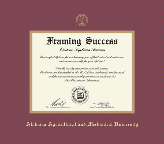 Alabama Agricultural and Mechanical University Diploma (8 x 10) Frame with Maroon and Gold Double Mat and Gold Embossing