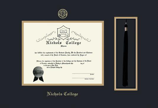 Nichols College Diploma Frame with Tassel Cut-out and Black and Gold Double Mat and Gold Embossing
