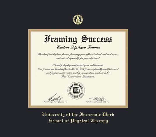 University of the Incarnate Word Diploma - School of Physical Therapy Frame with Black and Gold Double Mat and Gold Embossing