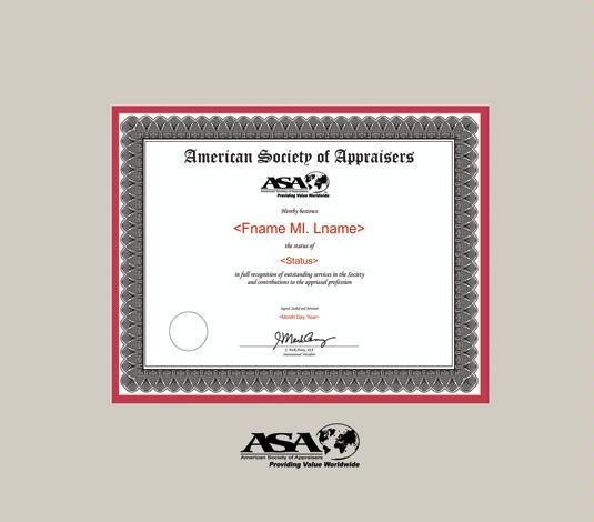 American Society of Appraisers Certificate - Membership (9/13 to Present) Frame with Gray and Red Double Mat and Black Embossing