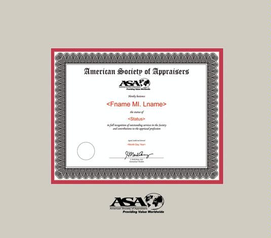 American Society of Appraisers Certificate - Accreditation (9/13 to Present) Frame with Gray and Red Double Mat and Black Embossing