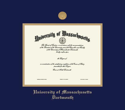 University of Massachusetts- Dartmouth Diploma - BA/MA (Pre 2020) Frame with Medallion and Navy Blue and Gold Double Mat and Gold Embossing