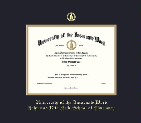 University of the Incarnate Word Diploma - Pharmacy (7/14 to Present) Frame with Black and Gold Double Mat and Gold Embossing