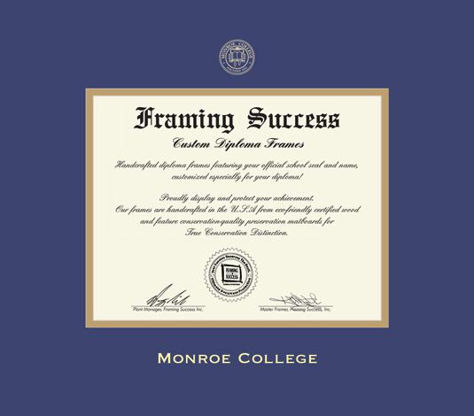 Monroe College Diploma - Bachelor Frame with Navy Blue and Gold Double Mat and Gold Embossing