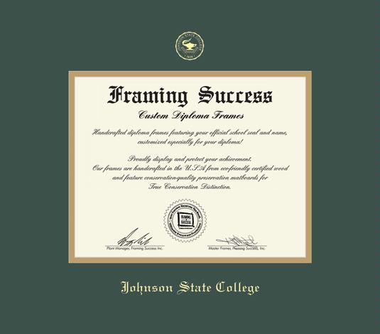 Johnson State College Diploma (7/14 to Present) Frame with Green and Gold Double Mat and Gold Embossing