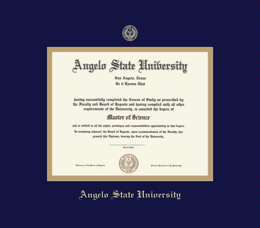 Angelo State University Diploma (12/14 to Present) Frame with Navy Blue and Gold Double Mat and Gold Embossing