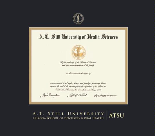 A.T. Still University of Health Sciences Diploma - DMD (AZ School of Dentistry & Oral Health) Frame with Black and Gold Double Mat and Gold Embossing