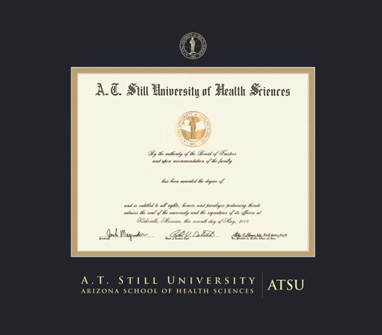 A.T. Still University of Health Sciences Diploma - MA (AZ School of Health Sciences) Frame with Black and Gold Double Mat and Gold Embossing
