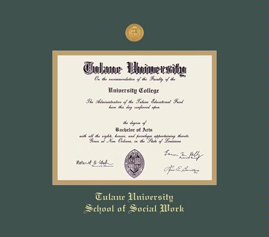 Tulane University Diploma - School of Social Work Frame with Medallion and Green and Gold Double Mat and Gold Embossing