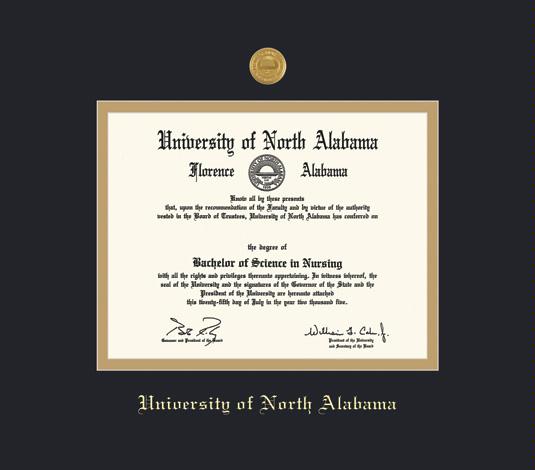 The University of North Alabama Diploma (12/14 to Present) Frame with Medallion and Black and Gold Double Mat and Gold Embossing