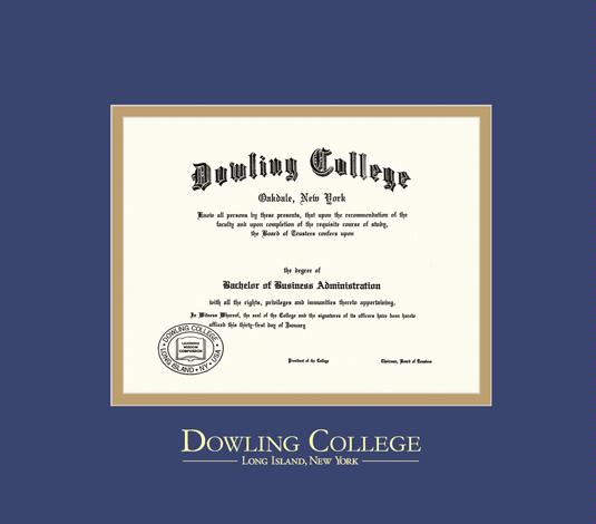 Dowling College Diploma (2015 to Present) Frame with Royal Blue and Gold Double Mat and Gold Embossing