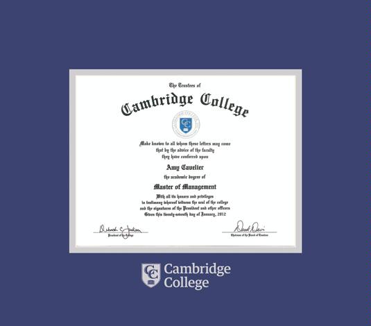 Cambridge College Diploma Frame with Royal Blue and Silver Double Mat and Silver Embossing