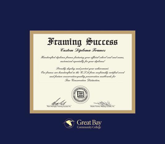 Great Bay Community College Diploma Frame with Navy Blue and Gold Double Mat and Gold Embossing