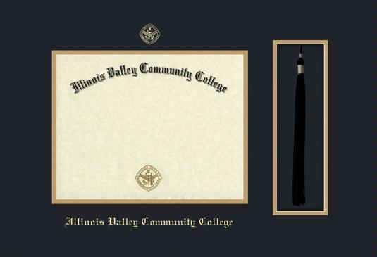 Illinois Valley Community College Diploma Frame with Tassel Cut-out and Black and Gold Double Mat and Gold Embossing
