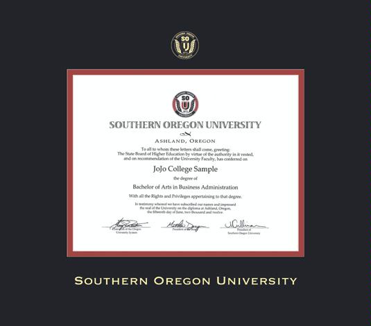 Southern Oregon University Diploma Frame with Black and Red Double Mat and Gold Embossing
