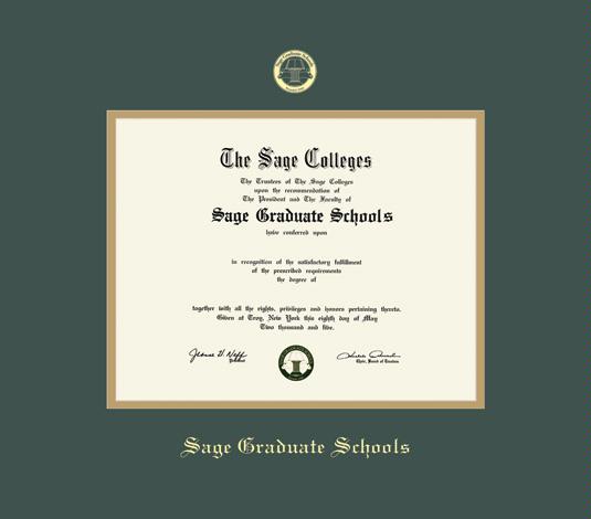Sage Graduate Schools Diploma (12/10 to 6/20) Frame with Green and Gold Double Mat and Gold Embossing