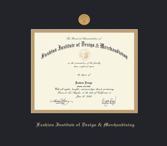 Fashion Institute of Design & Merchandising Diploma (1/15 to Present) Frame with Medallion and Black and Gold Double Mat and Gold Embossing