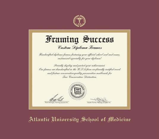 Atlantic University School of Medicine Diploma Frame with Maroon and Gold Double Mat and Gold Embossing