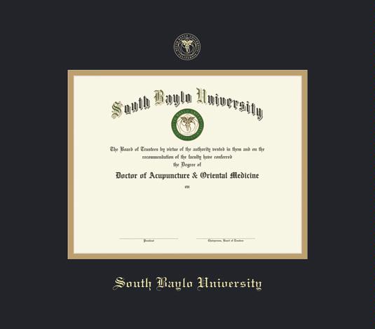 South Baylo University Diploma Frame with Black and Gold Double Mat and Gold Embossing