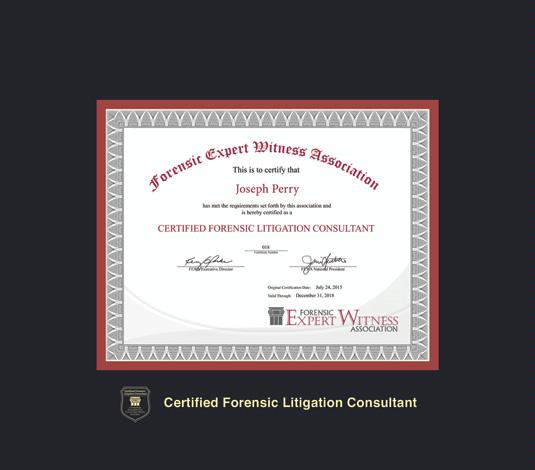 Forensic Expert Witness Association Certificate Frame with Black and Red Double Mat and Gold Embossing