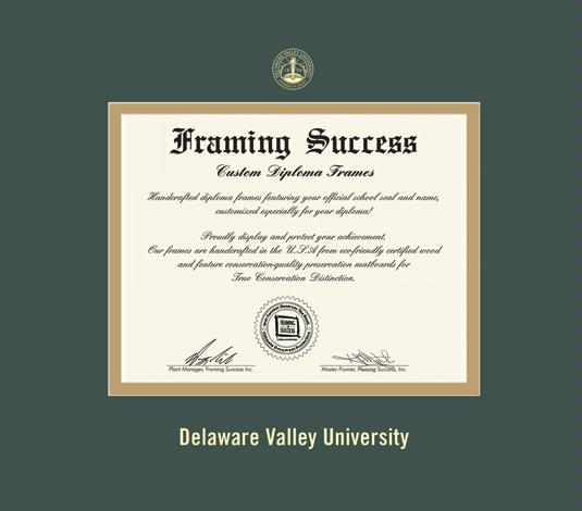 Delaware Valley University Diploma (4/15 to Present) Frame with Green and Gold Double Mat and Gold Embossing