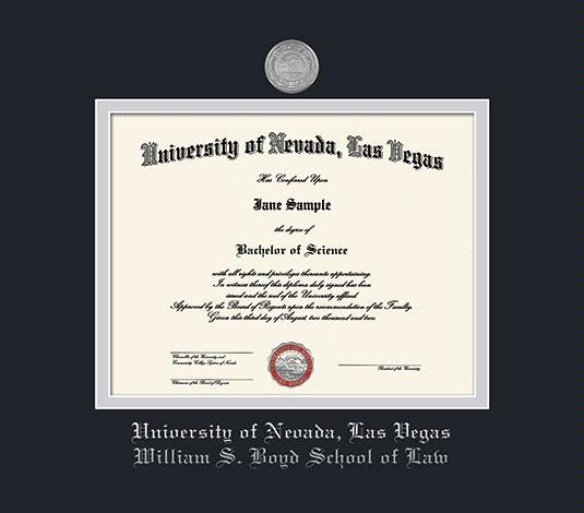 University of Nevada Las Vegas Diploma - Law Frame with Medallion and Black and Silver Double Mat and Silver Embossing