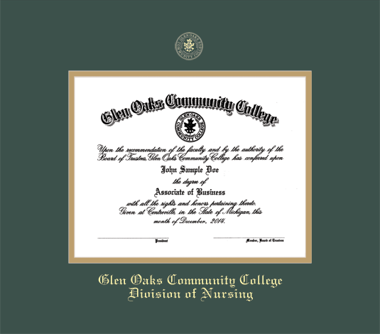 Glen Oaks Community College Diploma - Nursing Frame with Green and Gold Double Mat and Gold Embossing