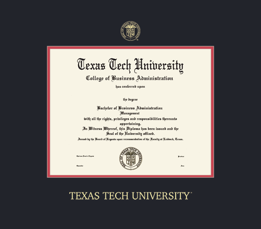 Texas Tech University Diploma - BA/MA/Doc Frame with Black and Red Double Mat and Gold Embossing