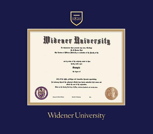 Widener University Diploma (2015 to Present) Frame with Navy Blue and Gold Double Mat and Gold Embossing