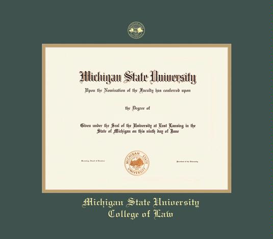Michigan State University Diploma - College of Law (Pre 2021) Frame with Green and Gold Double Mat and Gold Embossing