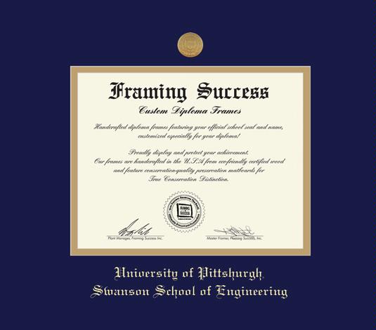 University of Pittsburgh Diploma - Swanson School of Engineering (12x16) Frame with Medallion and Navy Blue and Gold Double Mat and Gold Embossing