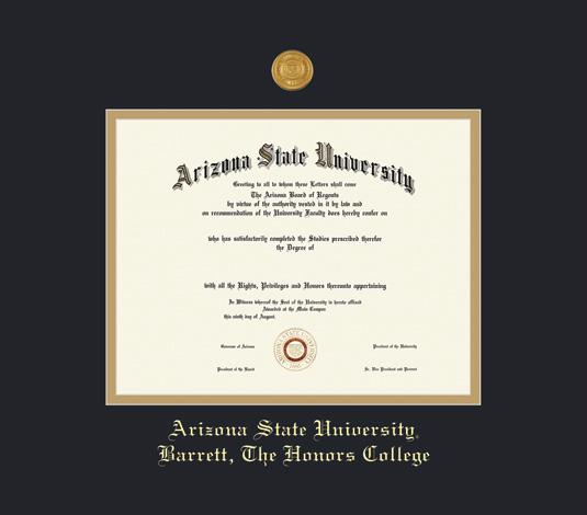 Arizona State University Diploma - Barrett, The Honors College Doctorate Frame with Medallion and Black and Gold Double Mat and Gold Embossing