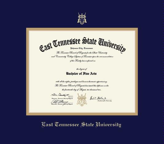 East Tennessee State University Diploma - BA/MA (2016 to Present) Frame with Navy Blue and Gold Double Mat and Gold Embossing