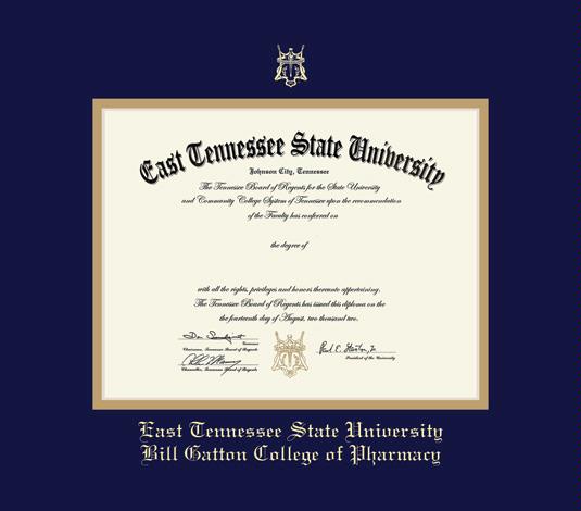 East Tennessee State University Diploma - Pharmacy Frame with Navy Blue and Gold Double Mat and Gold Embossing