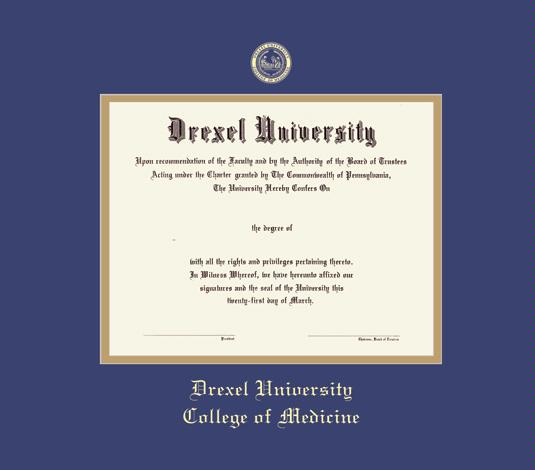 Drexel U. Center City HC DIploma - PhD in MD Frame with Royal Blue and Gold Double Mat and Gold Embossing