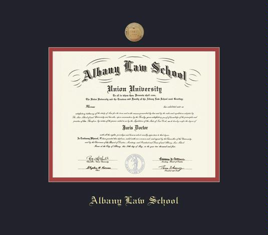 Albany Law School Diploma Frame with Medallion and Black and Red Double Mat and Gold Embossing