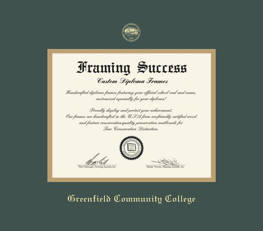 Greenfield Community College Diploma Frame with Green and Gold Double Mat and Gold Embossing