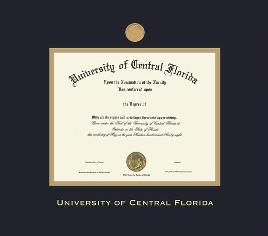 University of Central Florida Diploma - MA/PhD Frame with Medallion and Black and Gold Double Mat and Gold Embossing