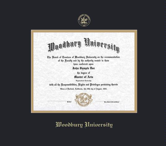 Woodbury University Diploma Frame with Black and Gold Double Mat and Gold Embossing