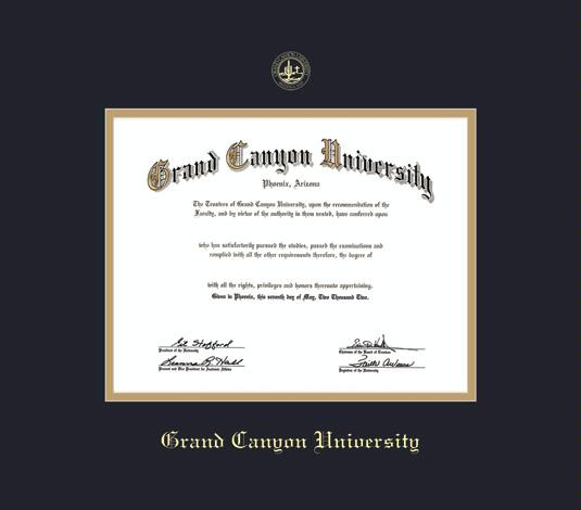 Grand Canyon University Diploma - Doc (7/16 to Present) Frame with Black and Gold Double Mat and Gold Embossing