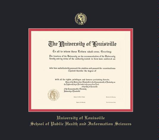 University of Louisville Diploma - Public Health/Information Sciences Frame with Black and Red Double Mat and Gold Embossing