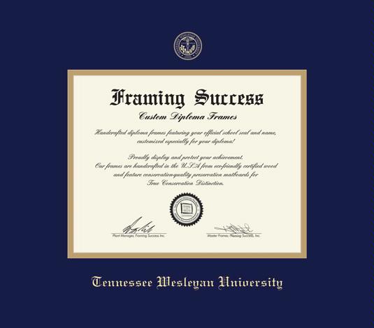 Tennessee Wesleyan University Diploma (10/16 to Present) Frame with Navy Blue and Gold Double Mat and Gold Embossing
