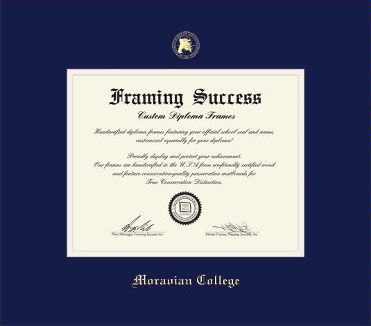 Moravian College Diploma (8/16 to 2021) Frame with Navy Blue and Cream Double Mat and Gold Embossing