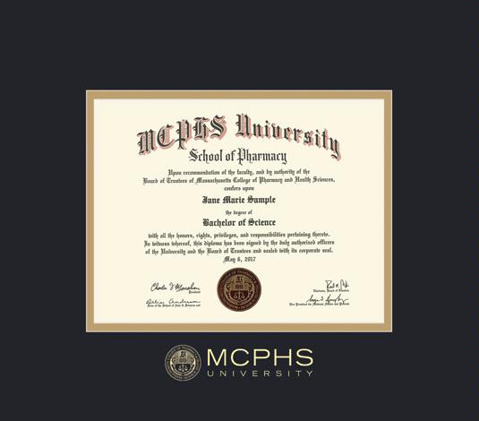 Massachusetts College of Pharmacy & Health Sciences Diploma (2017 to Present) Frame with Black and Gold Double Mat and Gold Embossing