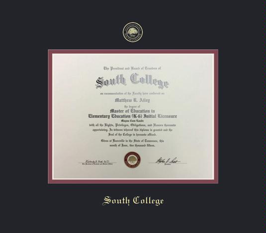 South College Diploma (Pre 9/22) Frame with Black and Maroon Double Mat and Gold Embossing