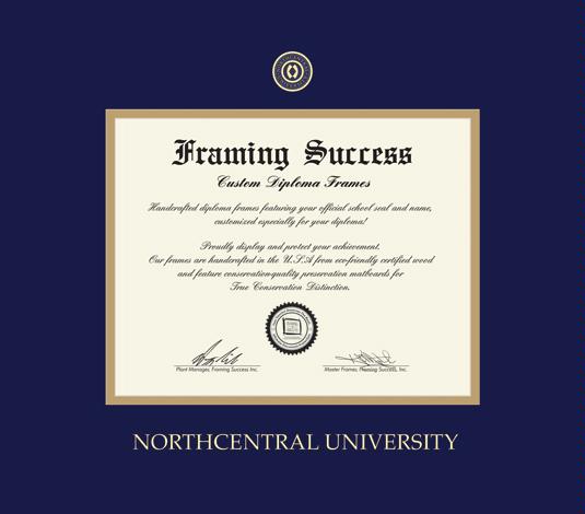 Northcentral University Diploma - PhD (2017 to Present) Frame with Navy Blue and Gold Double Mat and Gold Embossing