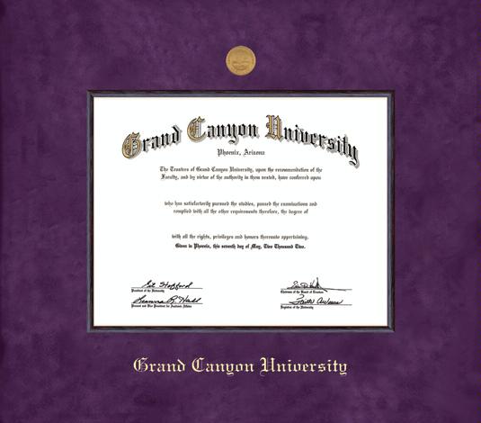 Grand Canyon University Diploma - Doctorate (7/16 to Present) Frame with Medallion and Purple Suede and Wood Fillet Double Mat and Gold Embossing